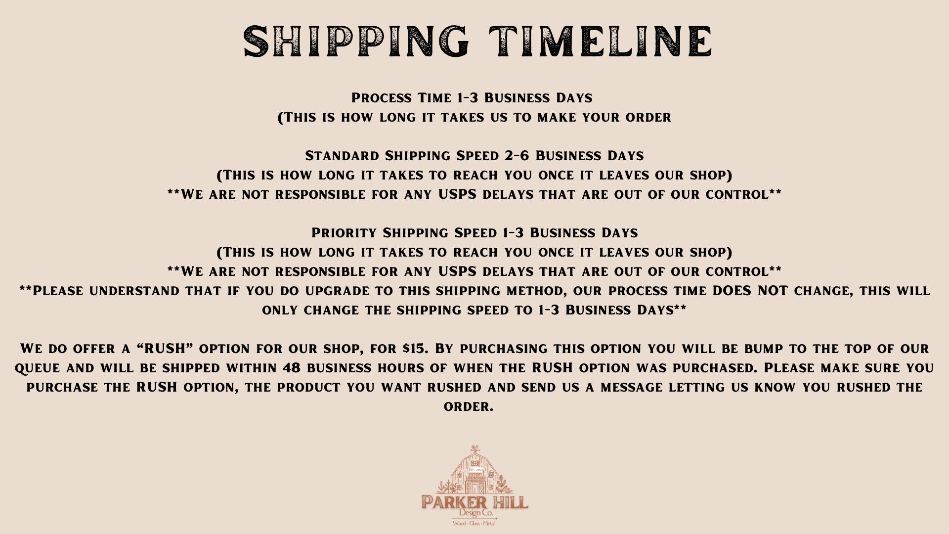 ⚬ Mailed priority mail 2-4 day; mail delays are out of our control