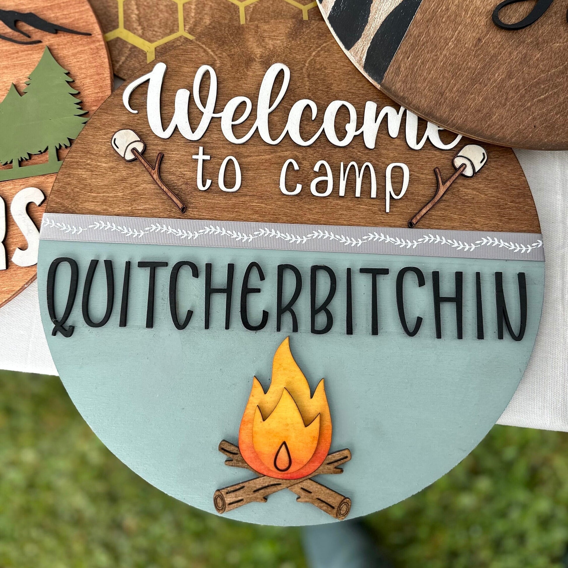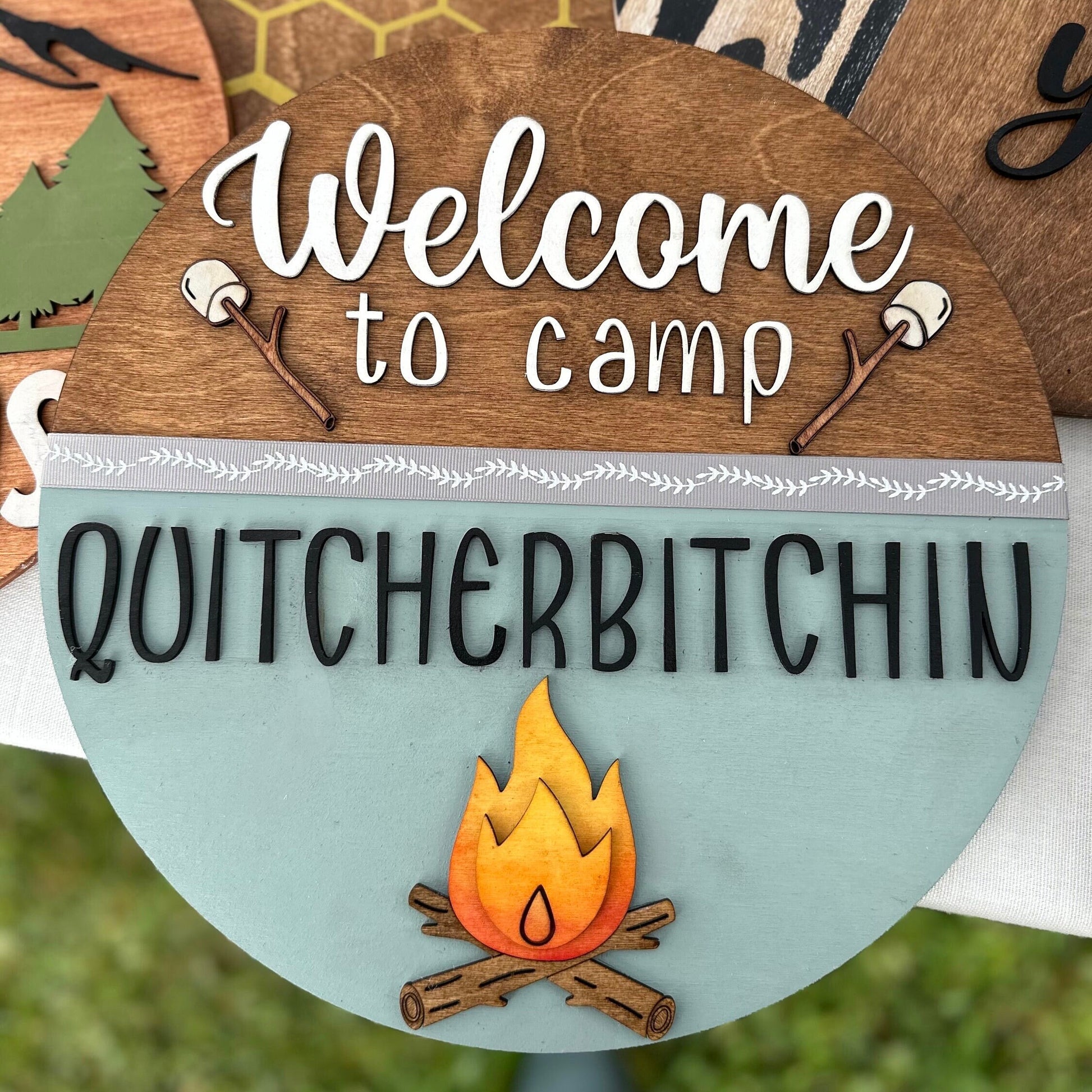 Camp Quitcherbitchin Sign: 12" Baltic Birch Wood Camping Decor
