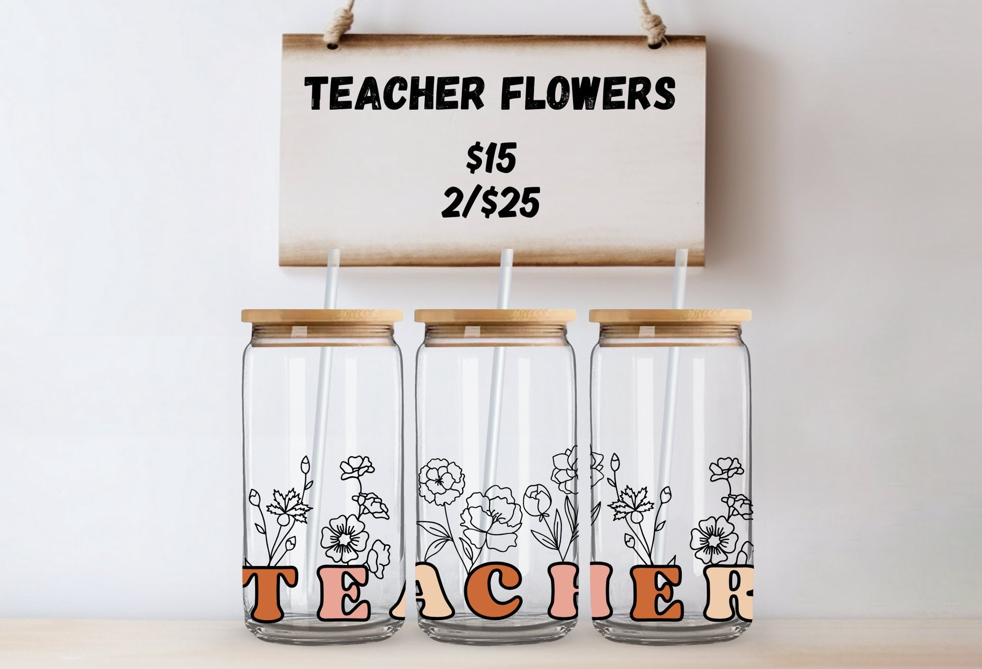 Personalized Teacher Glass Tumbler with Bamboo Lid & Straw