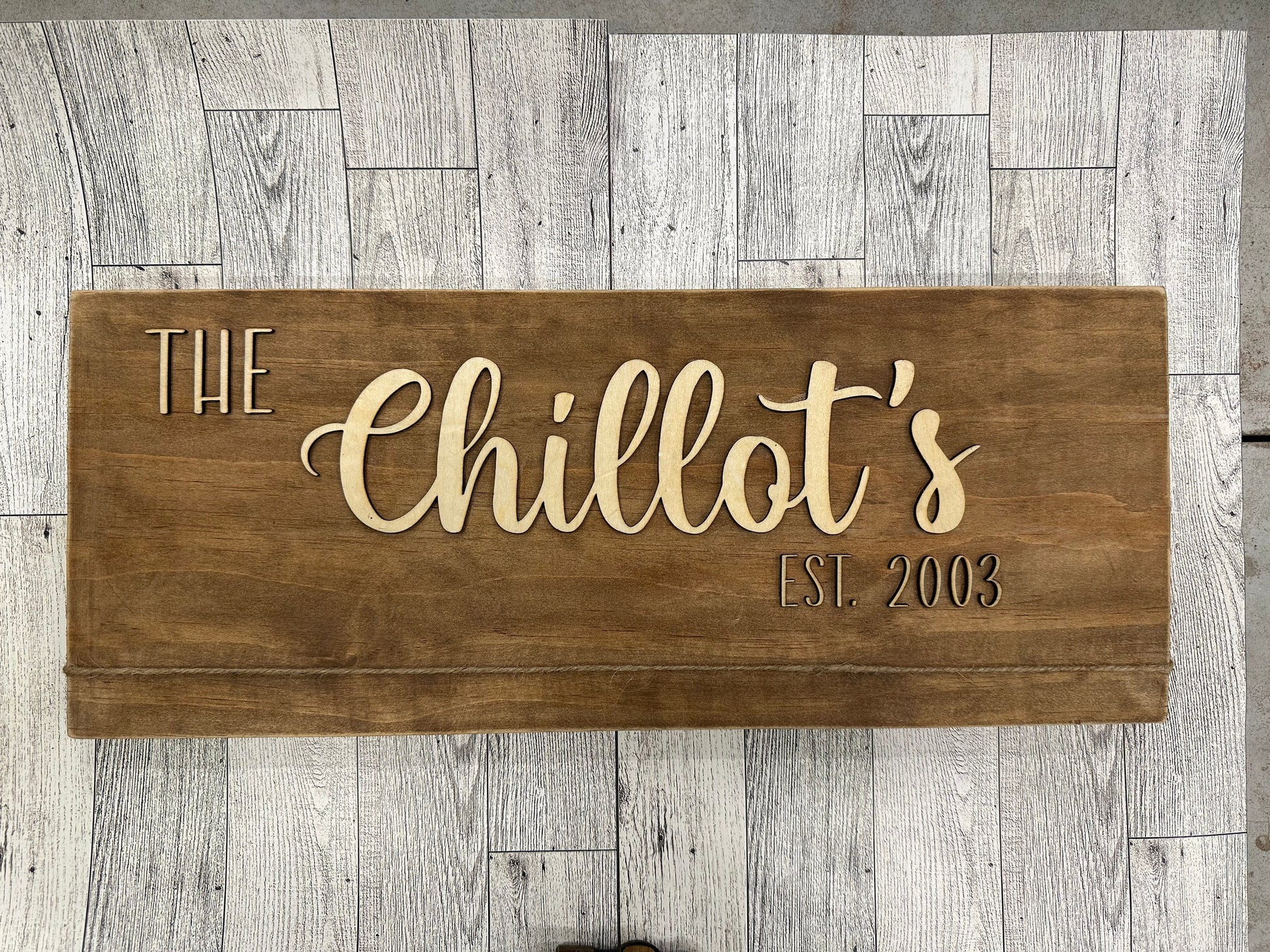 Personalized Wooden Photo Display: Rustic Family Name Sign