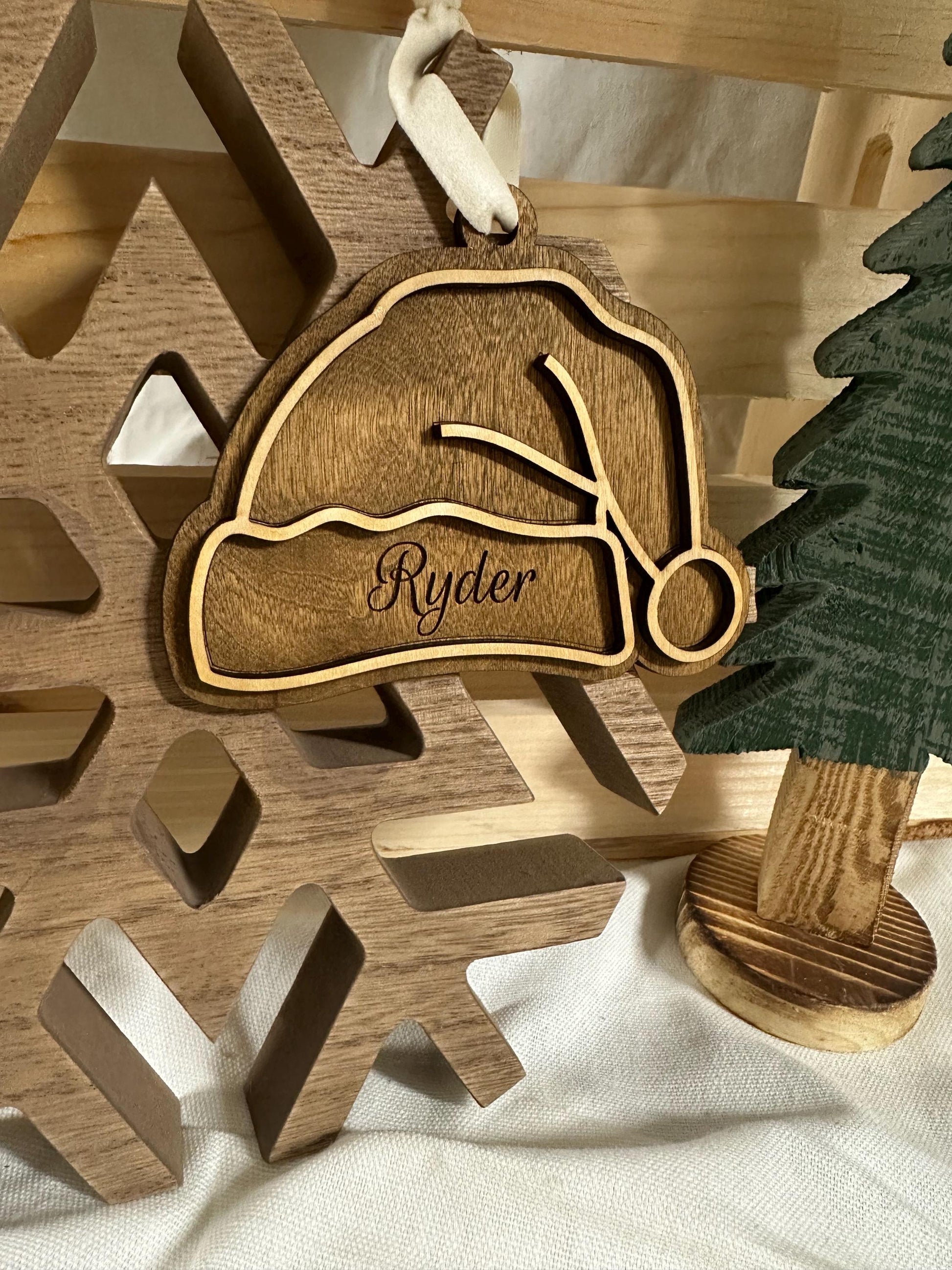 Personalized Wooden Santa Hat Ornament | Custom Engraved Name Tag